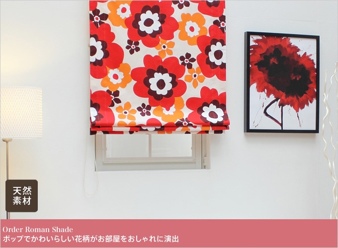 【幕体のみ】ポップな北欧調花柄 綿(コットン)100%ローマンシェード(レッド)【買い替え用】