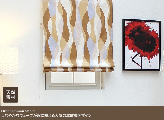 【幕体のみ】モダンな北欧調ストライプ 綿(コットン)100% ローマンシェード(ベージュ)【買い替え用】