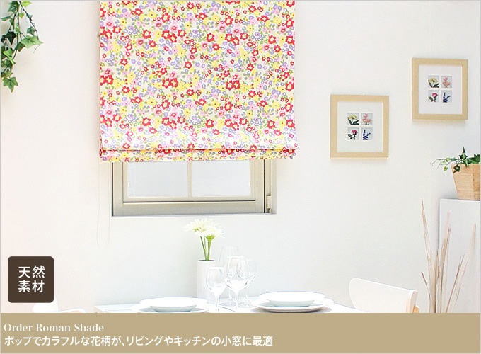 【幕体のみ】花柄のプリント 綿(コットン)100% ソフト仕上げ ローマンシェード(イエローレッド)【買い替え用】