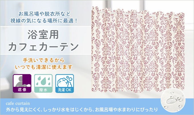 エレガントなオーナメント柄の浴室用遮像カフェカーテン「ダマスク」(幅145cm×丈75cm)