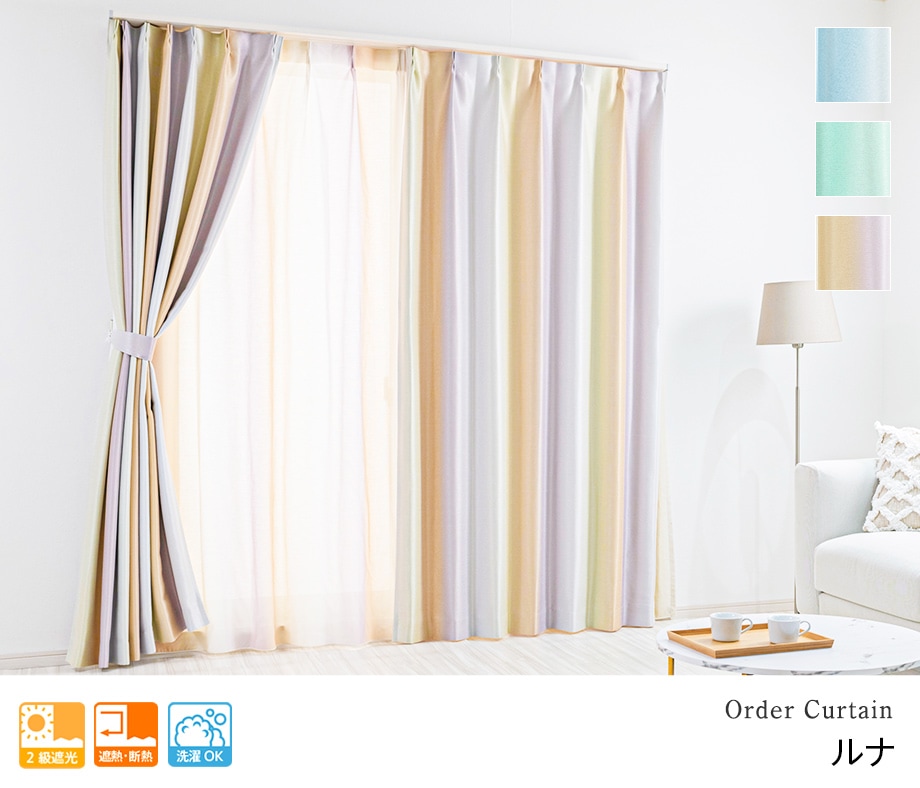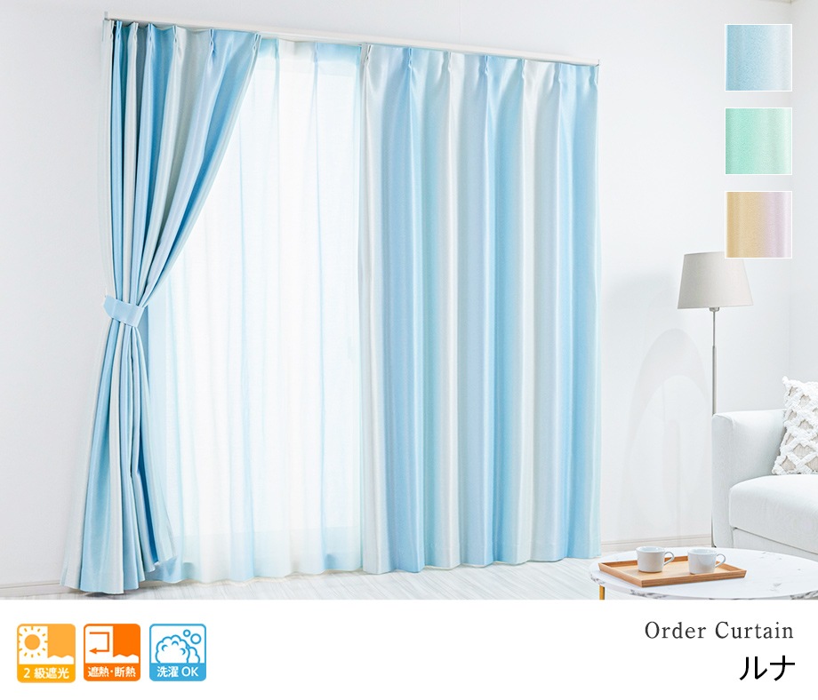 繊細に輝く光沢のグラデーション2級遮光カーテン「ルナ」ブルー