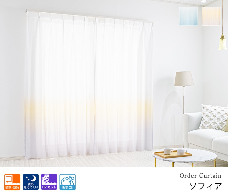 裾に向かって色づくグラデーションの遮像レースカーテン「ソフィア」イエロー