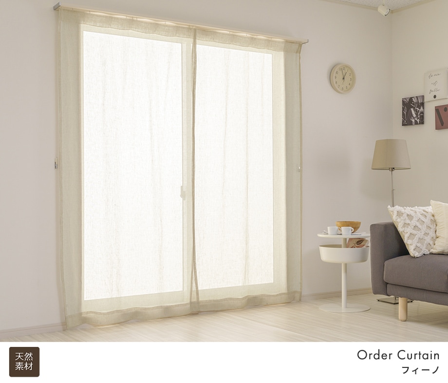 程よいシャリ感と透け感の麻100%天然素材レースカーテン「フィーノ」キナリ