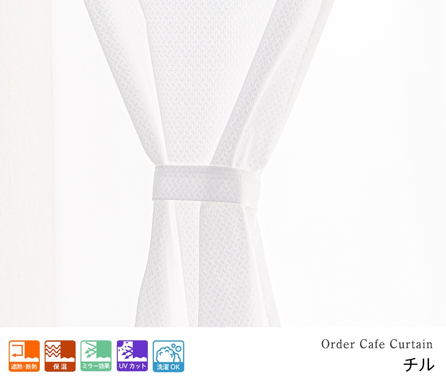 合わせやすい無地柄のUVカットミラーレースカフェカーテン「チル」ホワイト