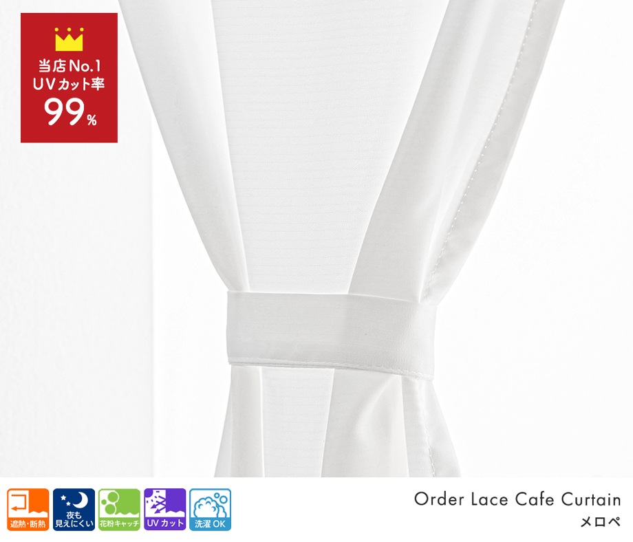 UVカット率約99% 紫外線を最大限にカットできる遮像レースカフェカーテン「メロペ」ホワイト