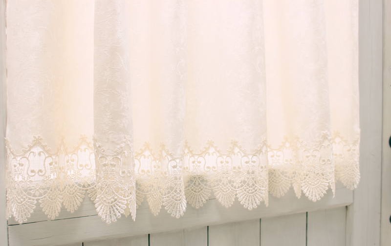 カットワーク刺繍 カフェカーテン 約130×90cm [Pure Rosa]