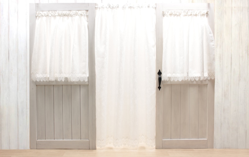 レース&撥水ジャカード カフェカーテン 約150×180cm [Eternelle]