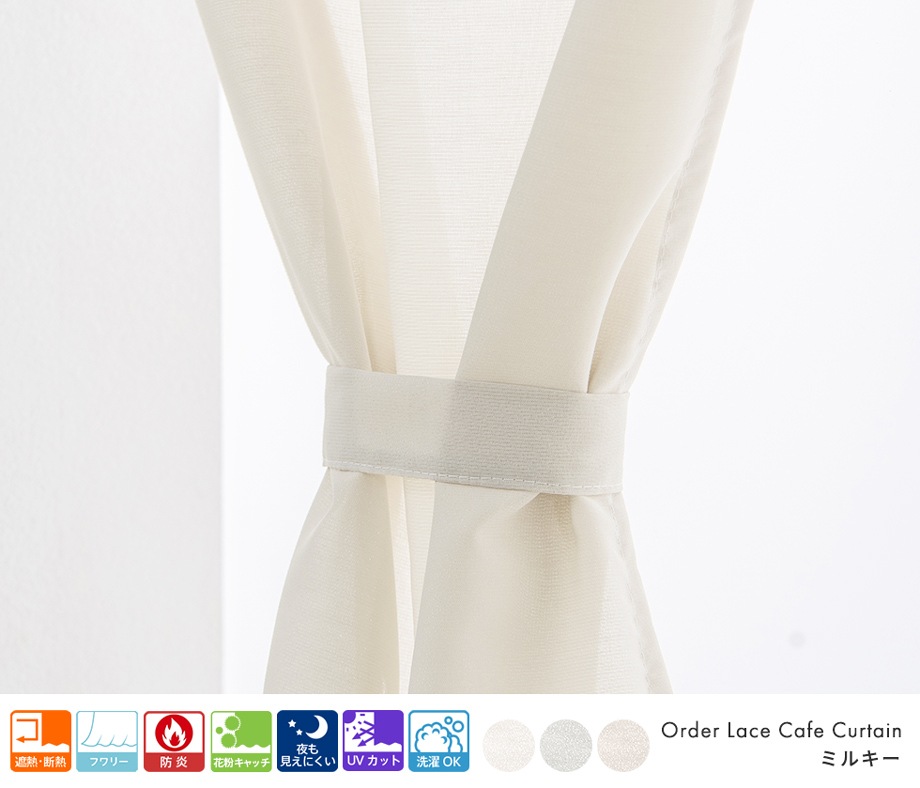 遮熱・遮像・UVカット・花粉キャッチ 機能性カフェカーテン 約147×90cm [Moderate]