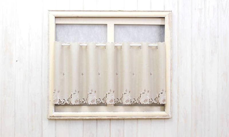 カットワーク刺繍 カフェカーテン 約130×90cm [Rose Metopes]