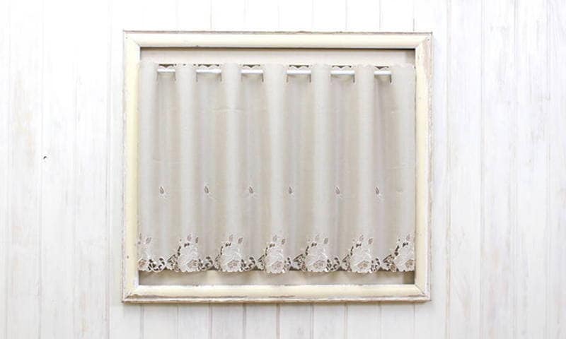 カットワーク刺繍 カフェカーテン 約130×60cm [Rose Metopes]