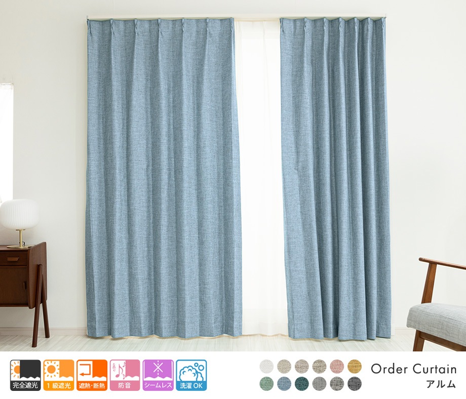 3層構造で軽く柔らかい完全遮光カーテン「アルム」ブルー
