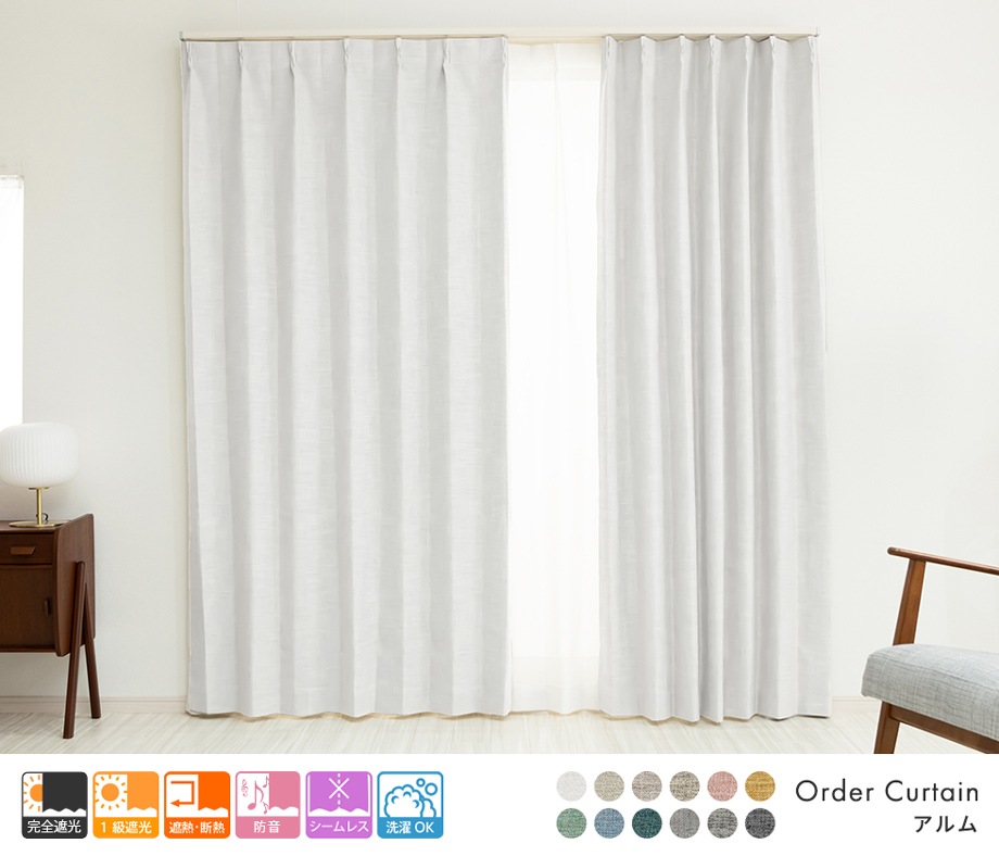 3層構造で軽く柔らかい完全遮光カーテン「アルム」ホワイト