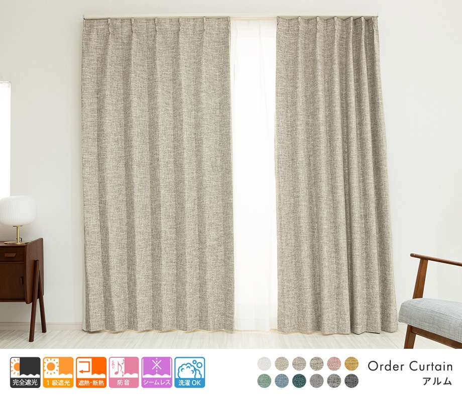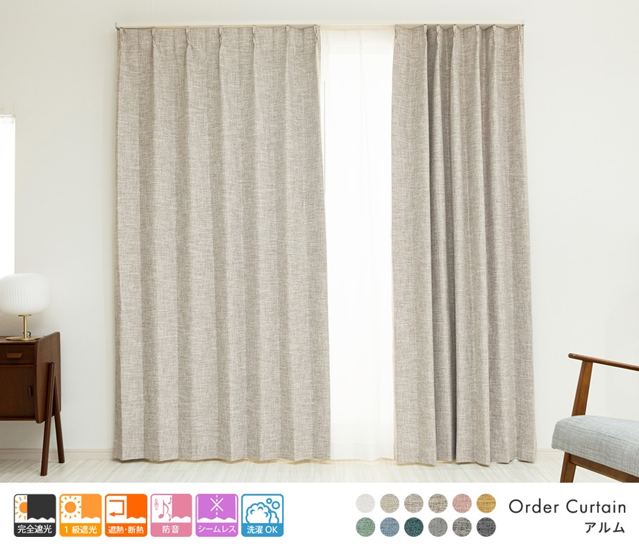 3層構造で軽く柔らかい完全遮光カーテン「アルム」ベージュ