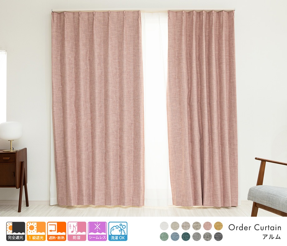 3層構造で軽く柔らかい完全遮光カーテン「アルム」ピンク