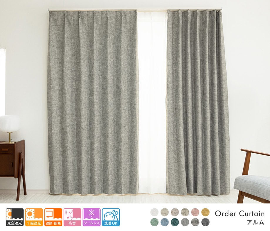 3層構造で軽く柔らかい完全遮光カーテン「アルム」アッシュグレー