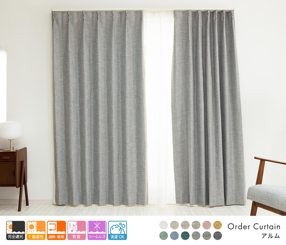 3層構造で軽く柔らかい完全遮光カーテン「アルム」ライトグレー