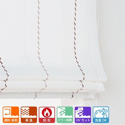 【幕体のみ】ボンボンストライプの防炎UVカットミラーレースローマンシェード「クランプ」【買い替え用】