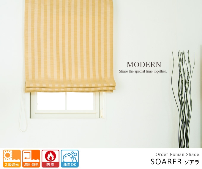 【幕体のみ】シンプルデザインのストライプ柄2級遮光防炎ローマンシェード「ソアラ」(ベージュ)【買い替え用】