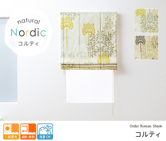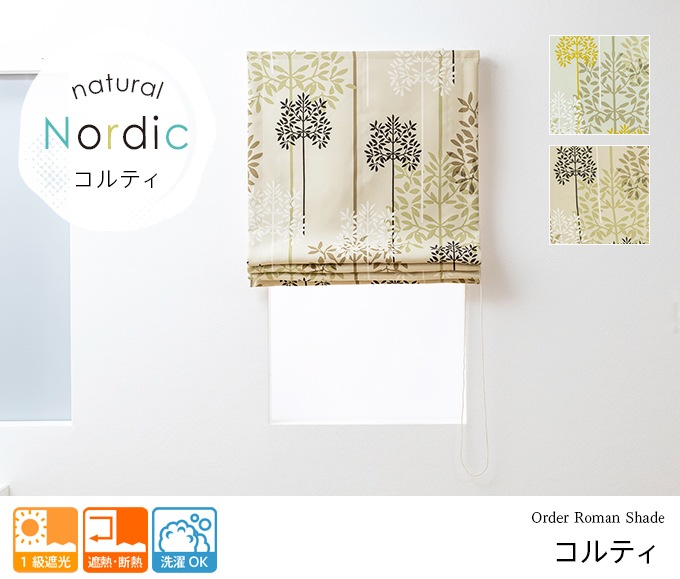 ナチュラル ノルディック コルティ(ベージュ) オーダーローマンシェード/1級遮光 遮熱・断熱 洗濯OK 日本製