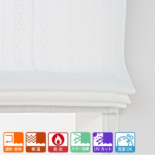 UVカット率約99% 紫外線を最大限にカットできる遮像レースローマンシェード「メロペ」ホワイト