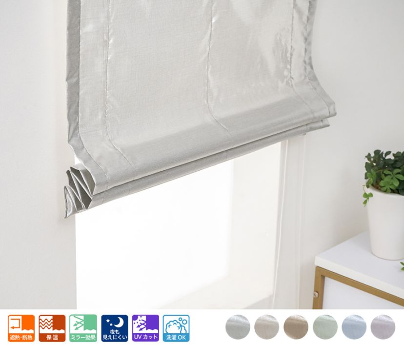 合わせやすい無地柄のUVカットミラーレースローマンシェード「チル」ホワイト