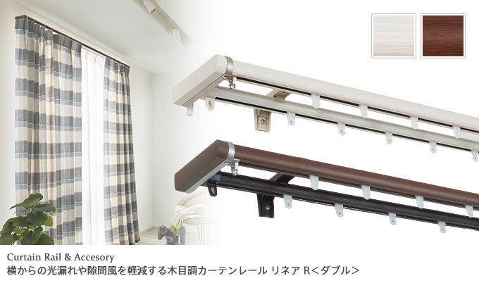 光や冷気を防ぐ 省エネ木目調伸縮カーテンレール 「ロアール」(3.0mダブルセット)