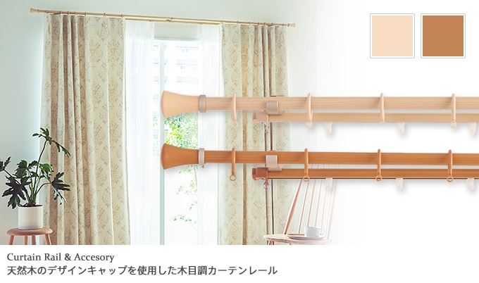 【3.0mダブルセット】TOSO 伸縮式カーテンレール 天然木のデザインキャップの木目調装飾レール「ミディオ」
