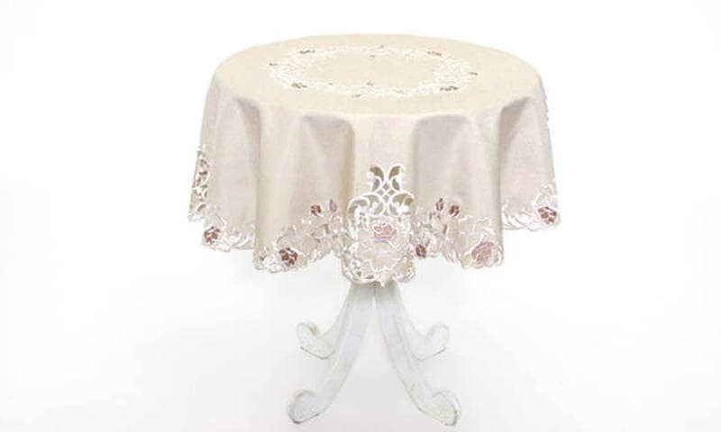 カットワーク刺繍 テーブルクロス 約100cm [Rose Metopes]