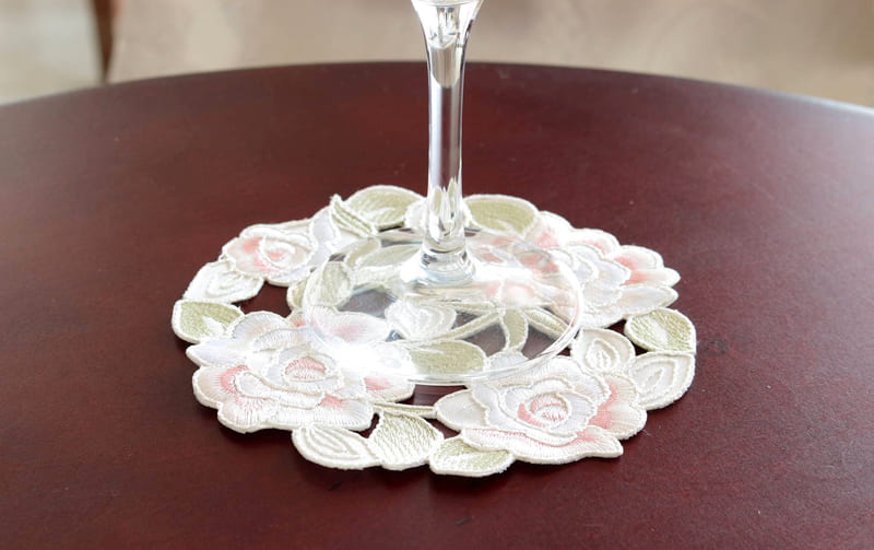 刺繍&カットワーク コースター 約12cm [Ribbon & Rose]