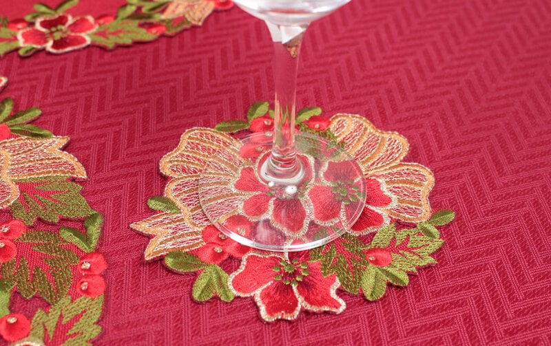 Xmas ヒイラギ 刺繍 コースター 約14cm