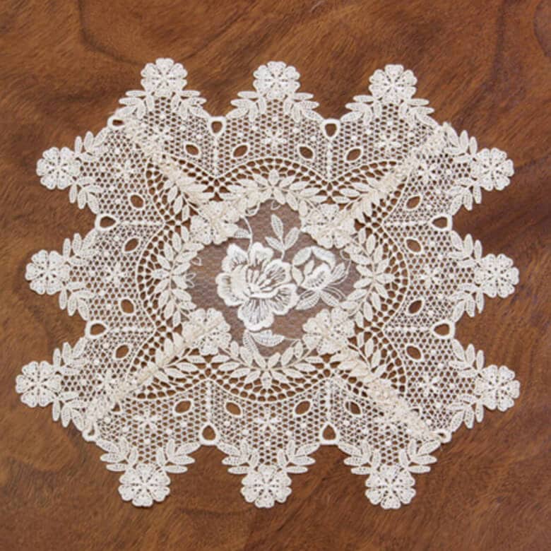 総柄刺繍&ギュピール ドイリー 約35×35cm [Brilliantly-Crystal]