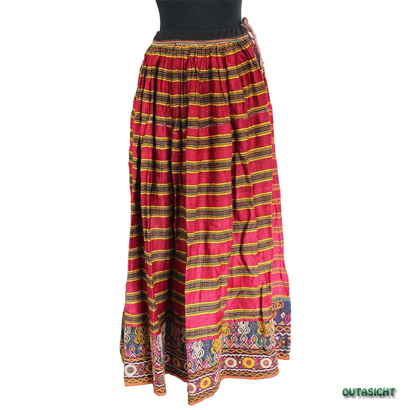 ミラーワーク 刺繍 シルクスカート アンティーク グジャラート インド IAT-05