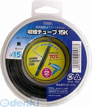 オーム電機 [09-1576] 収縮チューブ 15黒 2m