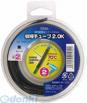 オーム電機 [09-1570] 収縮チューブ 2.0黒 2m
