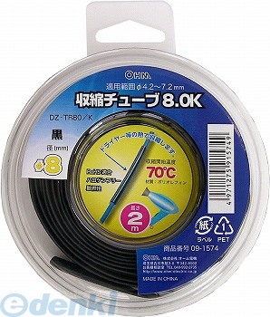 オーム電機 [09-1574] 収縮チューブ 8.0黒 2m