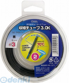 オーム電機 [09-1571] 収縮チューブ 3.0黒 2m