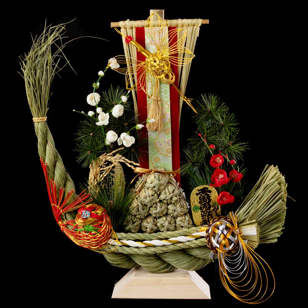 正月飾り 注連飾り 竹治郎 宝船(中) 新潟県南魚沼の正月飾り 開運祈願 一年飾れる招福飾り 見栄えのする玄関置き飾り 日本製 J...