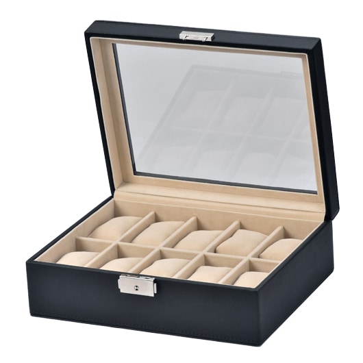 [SE63521BK] 合皮10本時計収納ケース ブラック