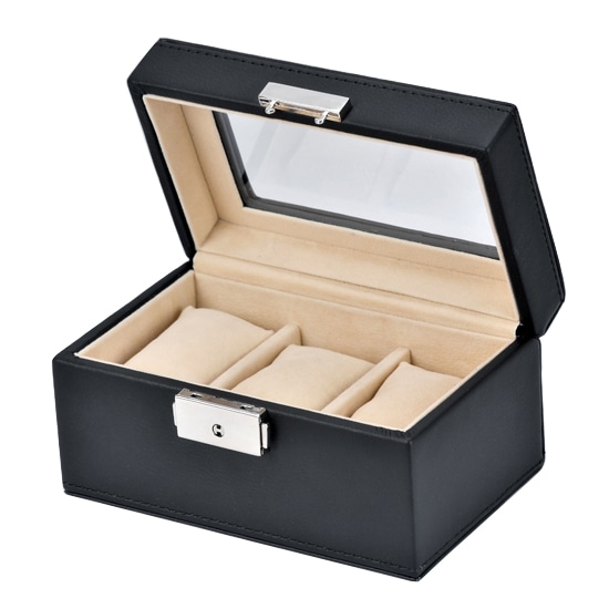 [SE63519BK] 合皮3本時計収納ケース ブラック