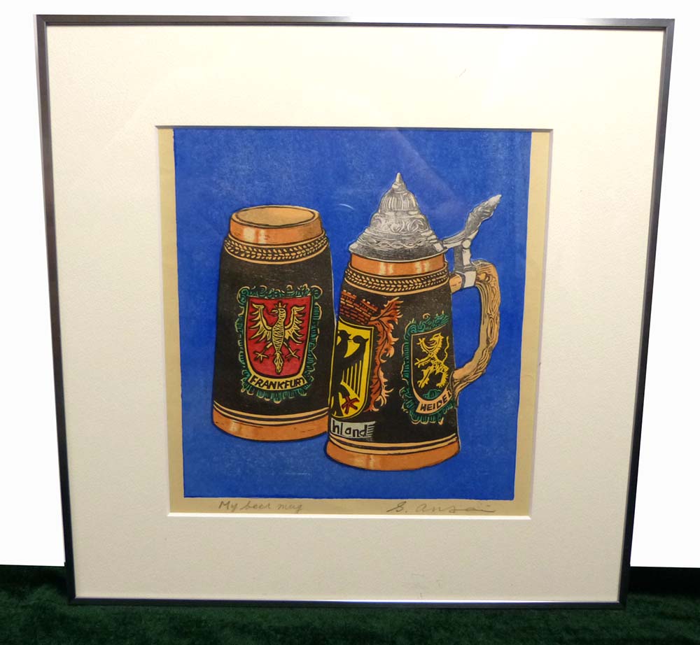 S.Anzai 「My beer mug」木版画 / 直筆サイン入り 【中古】