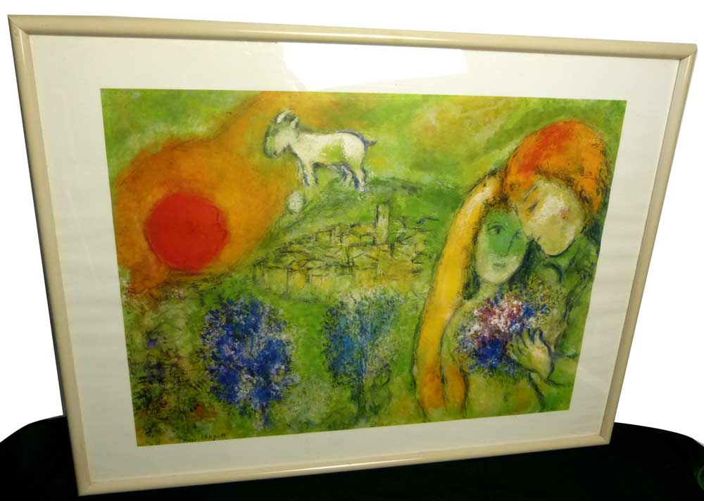 イタリアプリント Marc Chagall マルク シャガール / ヴァンスの恋人 印刷物 / ポスター 額装【中古】【送料無料...