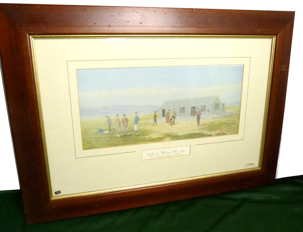 Golfer at Weekend Ho 1880 by F. P. Hopkins /FPホプキンス 木製 額装 ビンテージ/印...