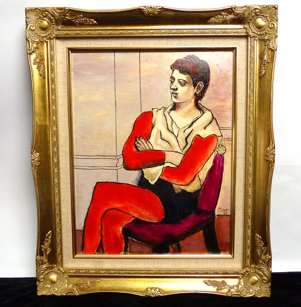KAJI作 Picasso / ピカソ 「腕を組んで座る軽業師」油彩画・模写 6号/F6 豪華額装【中古】
