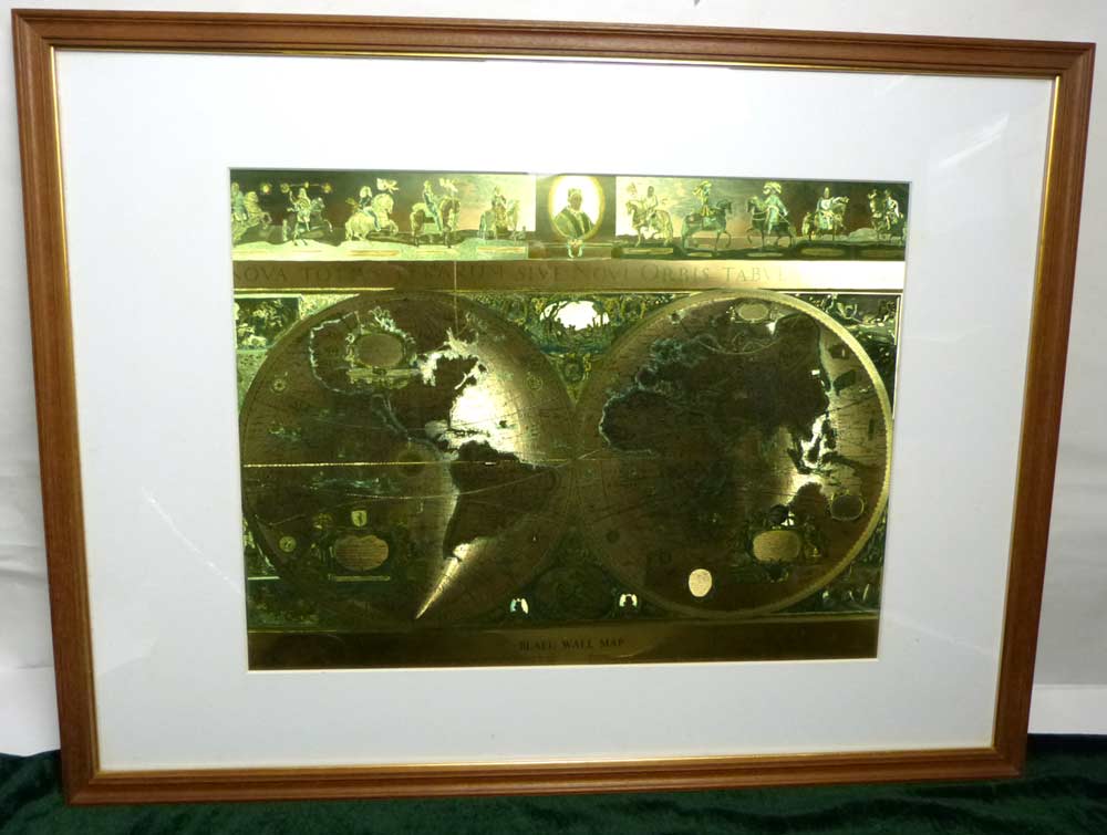 Vintage Blaeu Wall Map ビンテージウォールマップ アート / ポスター/ 額装/ 世界地図【中古】