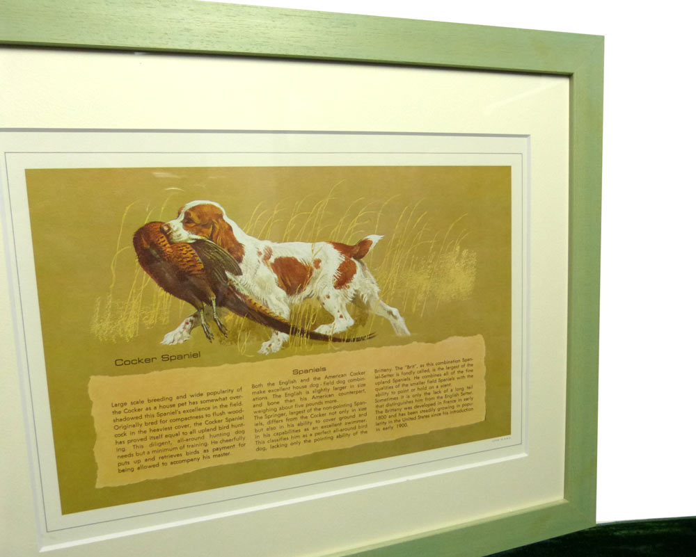 USA製 コッカー・スパニエル Cocker Spaniel リトグラフ (額装)(木製額)(緑)【中古】
