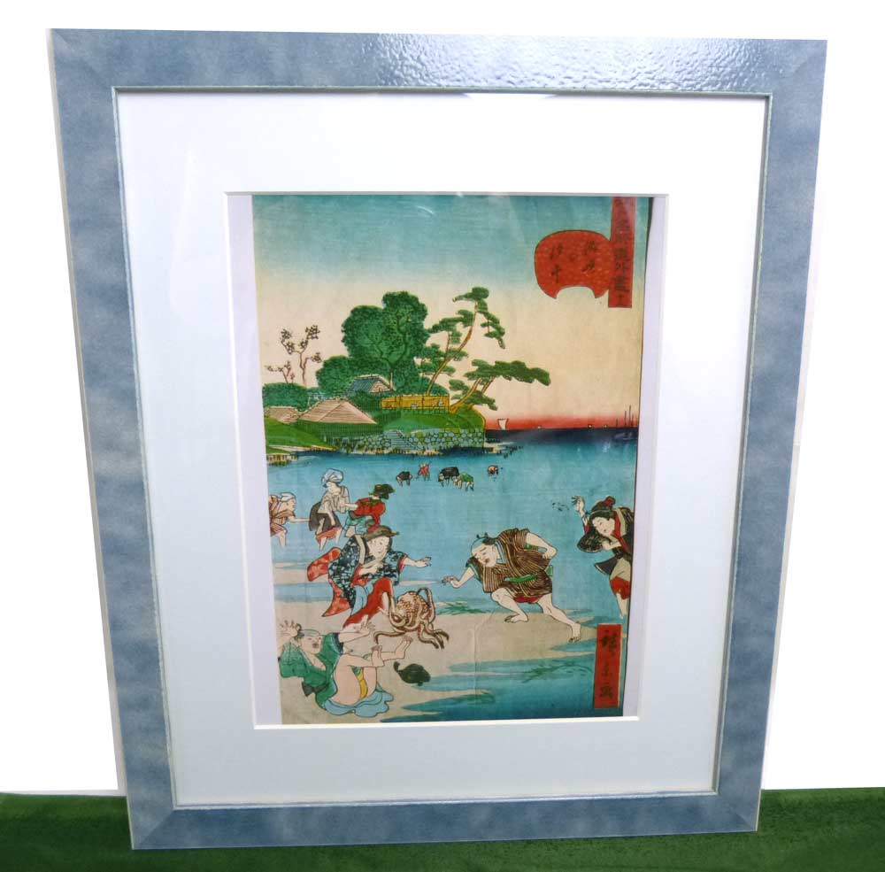歌川広景 江戸名所道戯尽 十三 浮世絵 印刷プリント 額装(八切判)(マット紙付き)【中古】