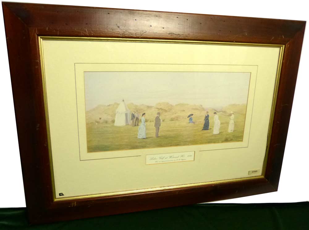 Ladies Golfer at Weekend Ho 1880 by F. P. Hopkins /FPホプキンス 木製 額装 ...