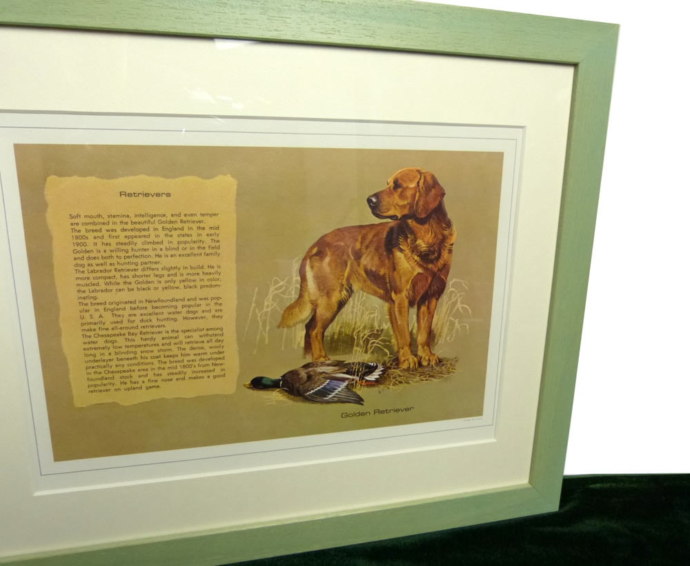 USA製 ゴールデンレトリーバー Golden Retriver リトグラフ (額装)(木製額)(緑)【中古】