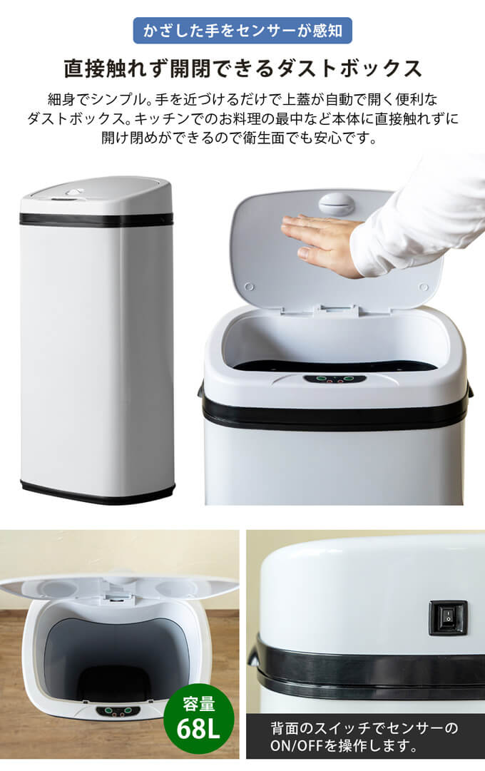 センサー自動開閉式ダストボックス 68L SG-02-WH ホワイト