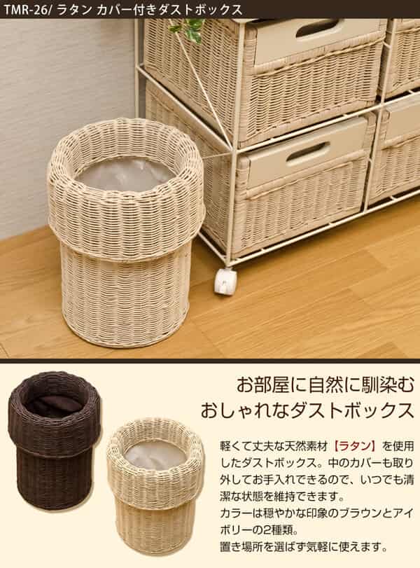ラタン カバー付きダストボックス アイボリー TMR-26-IV